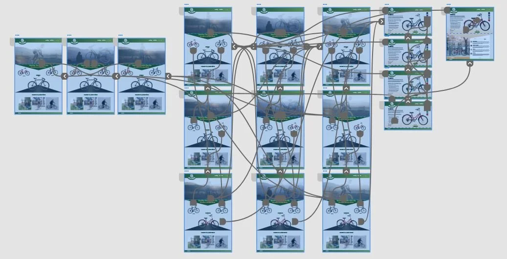 The homepage has a hero box that cycles through three double-exposure images featuring bikers with a mountain distance, suggesting the great expanse can be experienced even on city pavement. The center part of the homepage features the three bicycles that rotate in a circular manner when selected. The bike featured at the center of the screen has an “explore” button for users to click on to bring up the bike page itself which has reviews, more social media posts, dimensions, and other useful information.